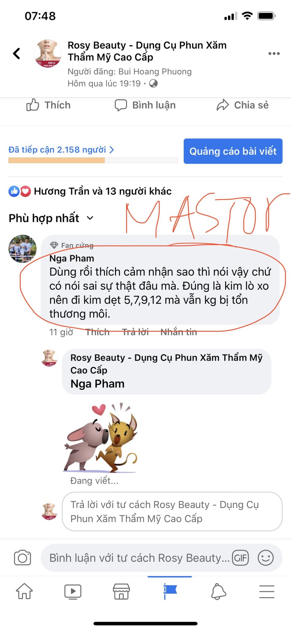 " Hơn 20 năm trong nghề trang điểm cho các siêu mẫu, khi cần phun xăm cho họ tôi luôn tin tưởng sử dụng các sản phẩm của Mastor, và tôi chưa bao giờ thất vọng."
